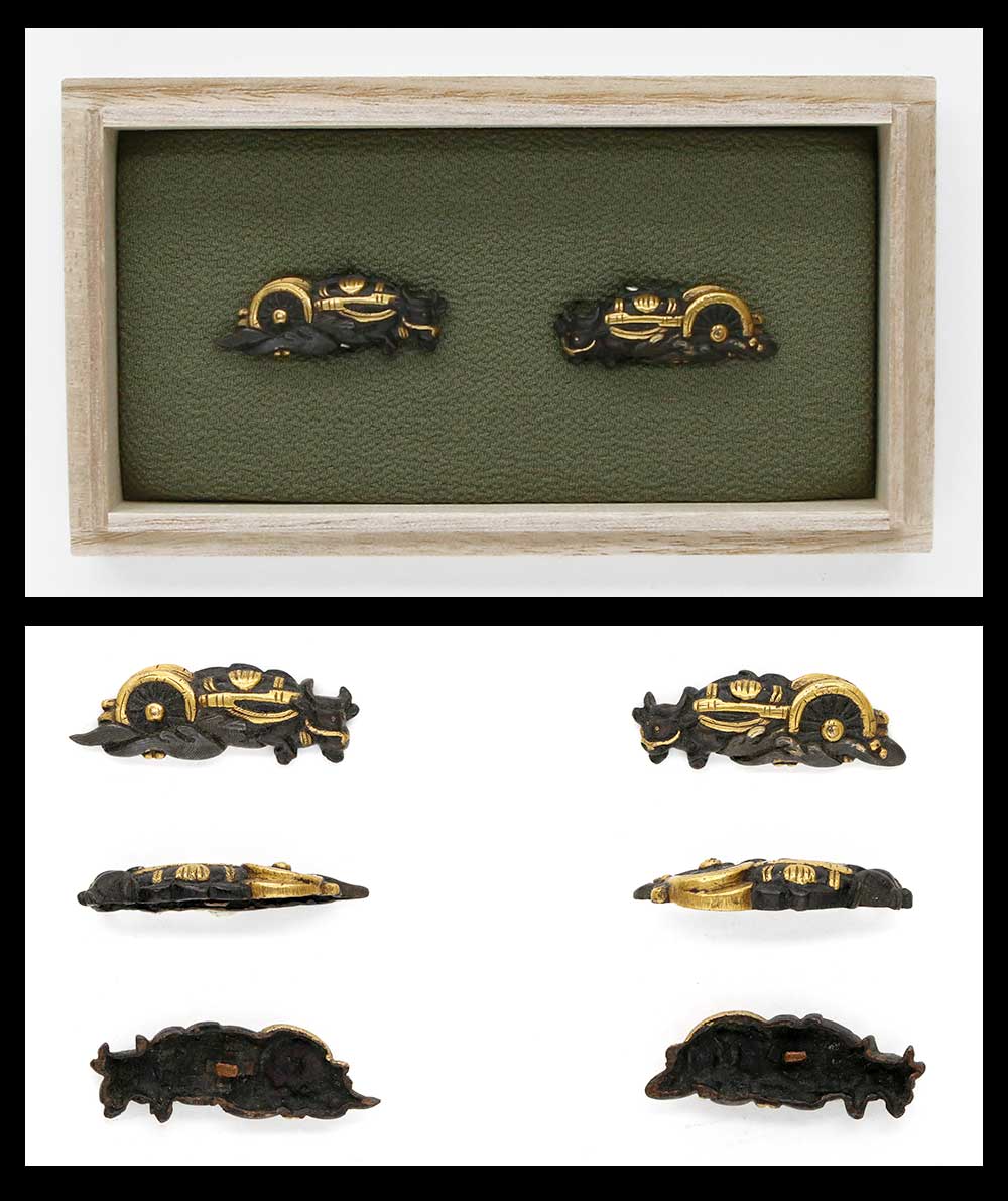 Special feature: On the Shakudo Nanako plate, an oxcart is engraved with gold color.