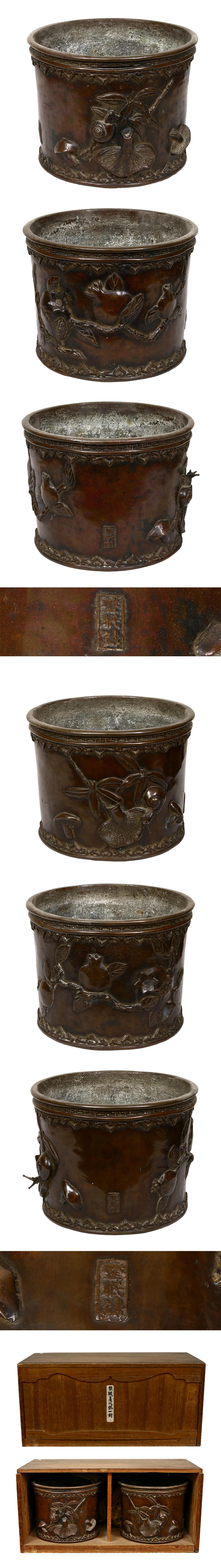 Special feature: The pomegranate, snali and muchroom are engraved. This is nice a pair of metal Hibachi.