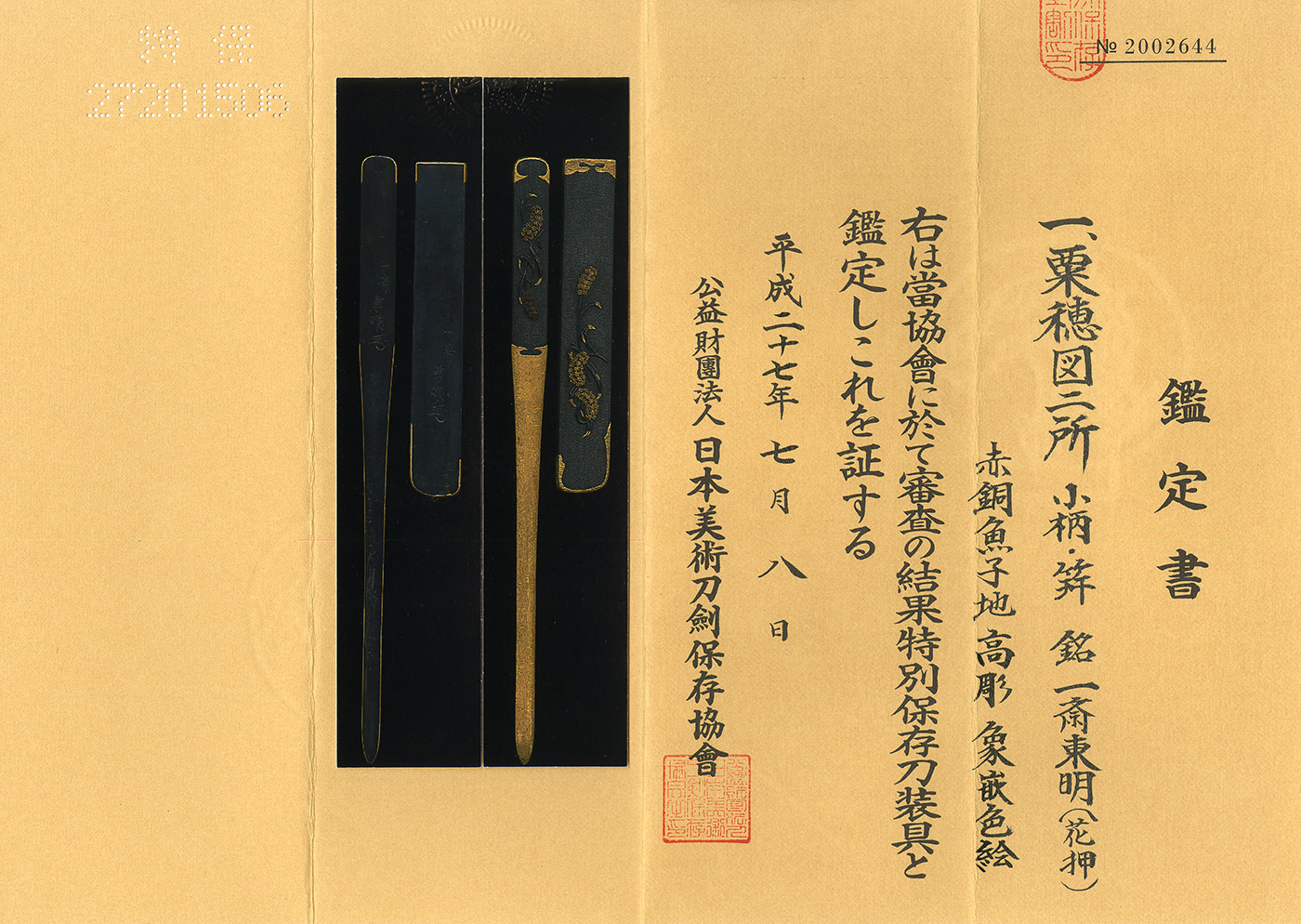 Set of Tosogu:Millet(Kozuka and Kogai)(NBTHK Tokubetsu Hozon Tosogu)