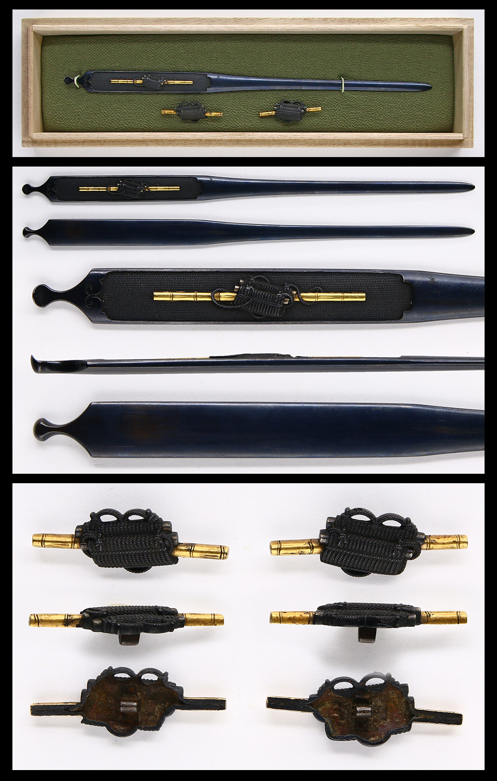 Special feature: Shakudo Nanako plate. The weaving machine is engraved with gold color.