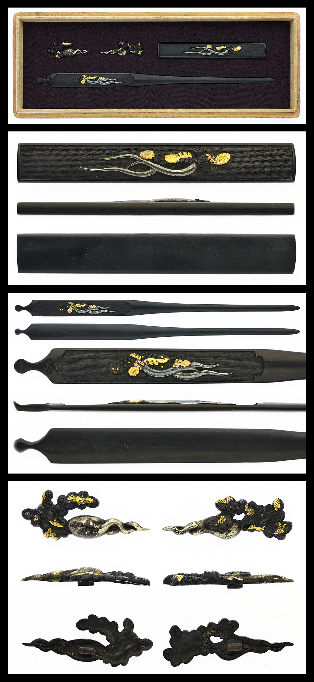 Set of Tosogu :Kozuka, Kōgai, Menuki(NBTHK Juyo Paper(the 67th NBTHK Juyo Tosogu)
