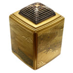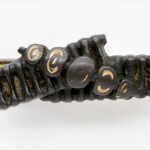 Special feature: This is a pair of Obidome(帯留). Shibuichi, silver and copper allys, water flow and turtles are carved. The part of water fllow is shiny.