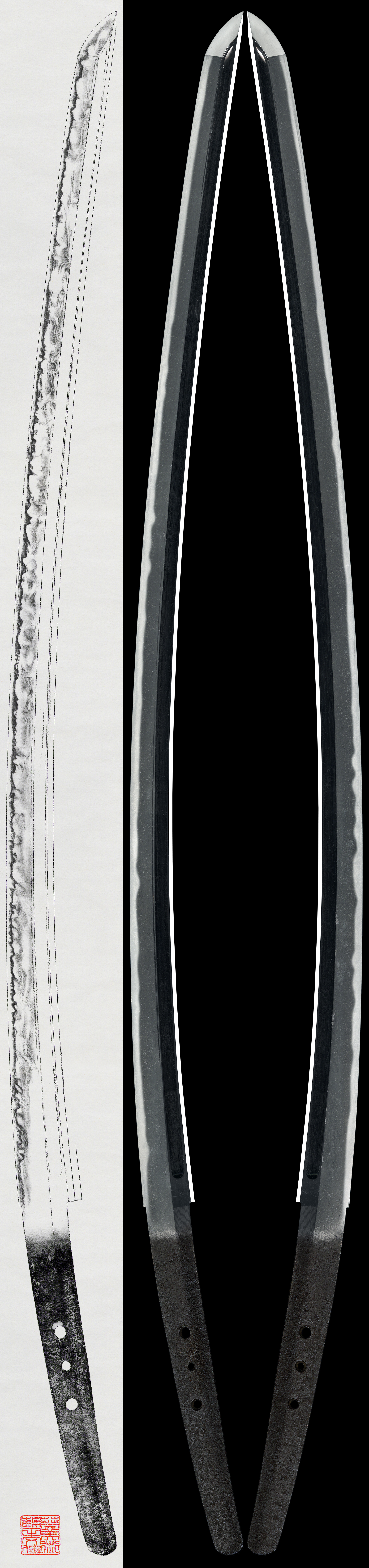Shape: A wide blade with thick Kasane and deep curvature. A Bo-hi (groove) is carved.