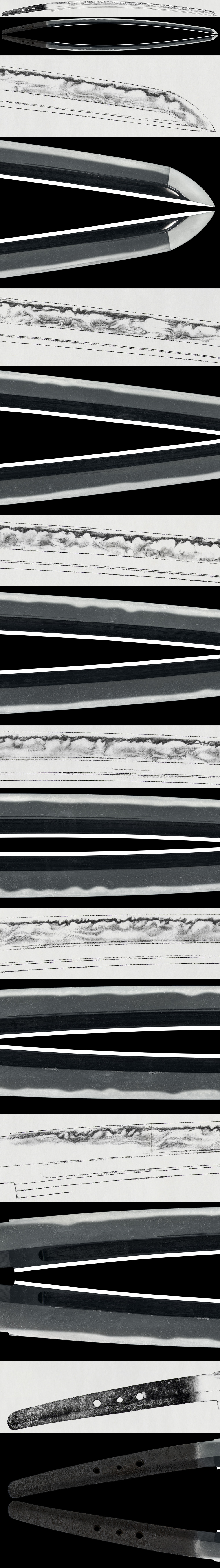 Hamon: A continuous pattern of small gunome-midare. There are slightly cloudy areas, but the Hamon remains intact and is an excellent work. The Boshi is irregular.