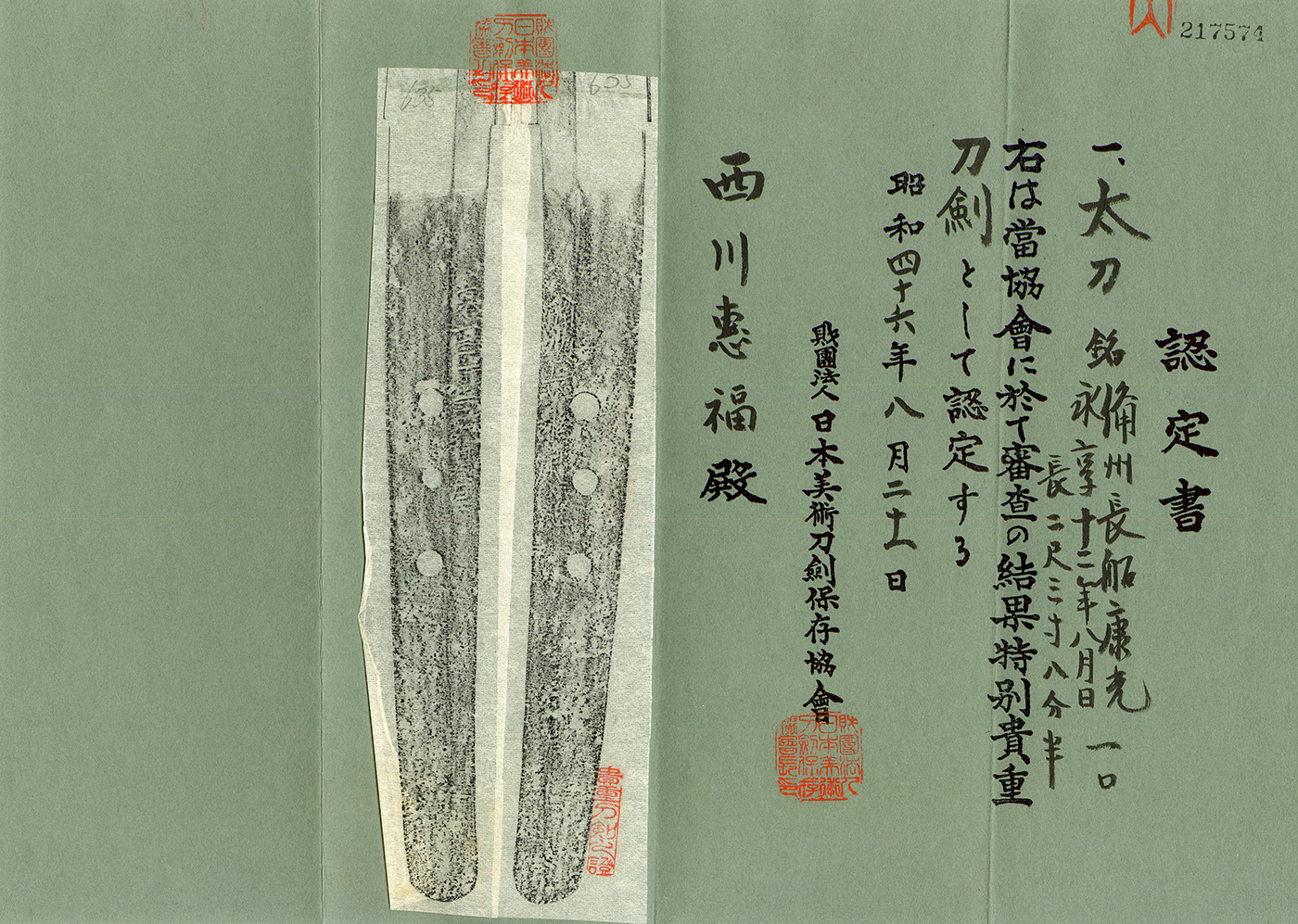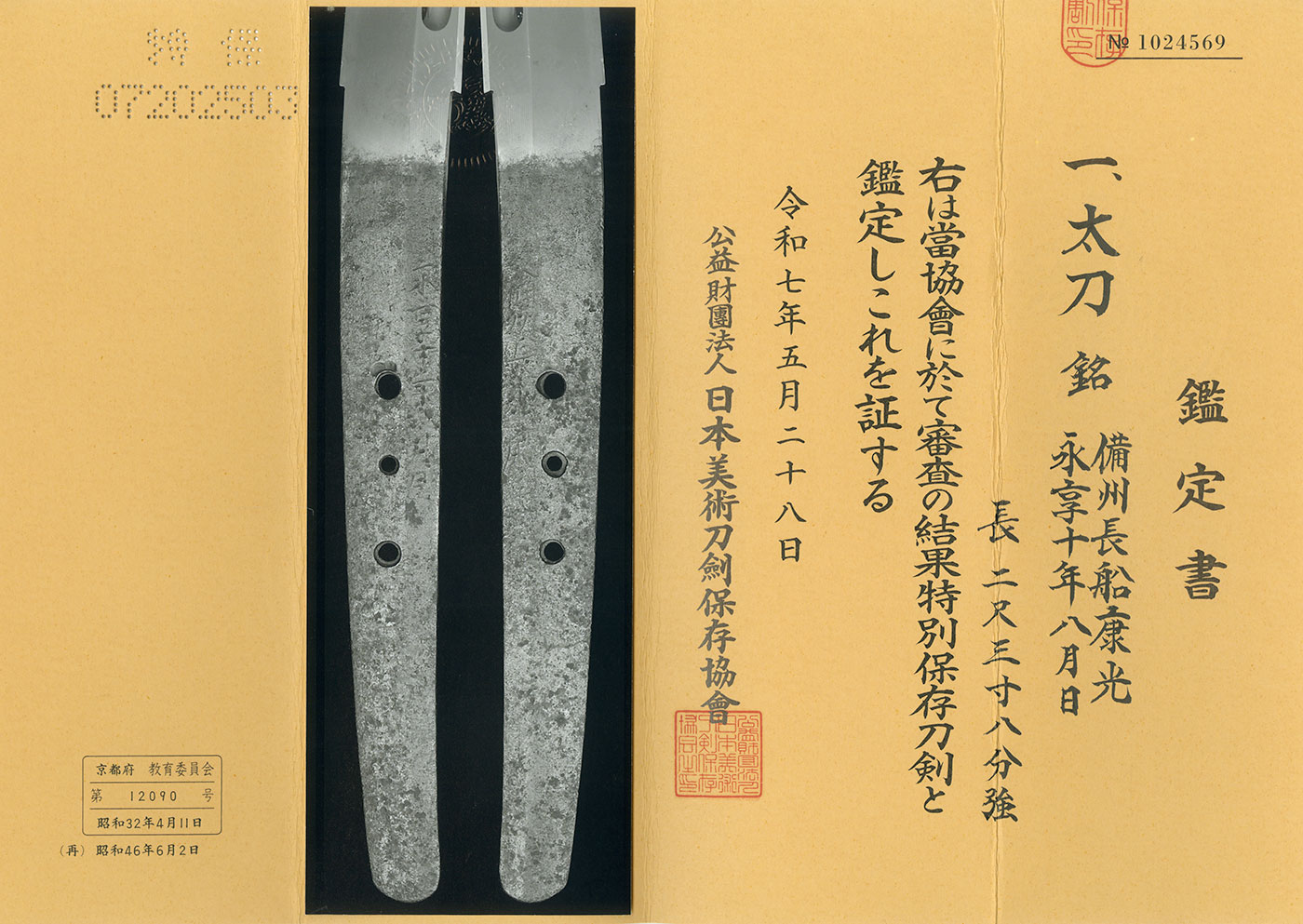 Katana :Bishu Osafune Yasumitsu (NBTHK Tokubetsu Hozon Token)