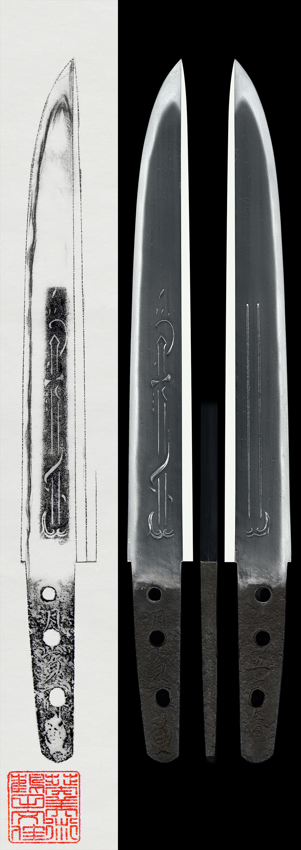 Shape: A small-sized tanto with carving of Kusa-no-kurikara (stylized dragon),gomacashi and Tsume.