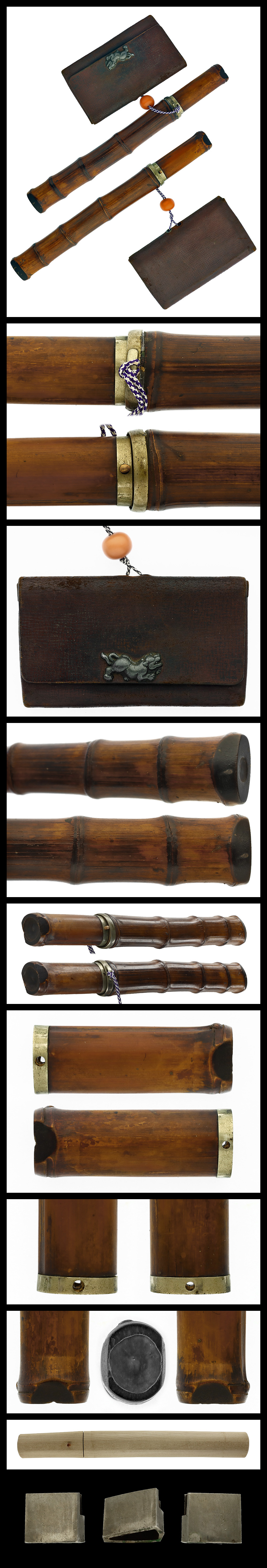 Koshirae: Mounting designed to resemble a kiseru pipe case, with a tobacco pouch attached.