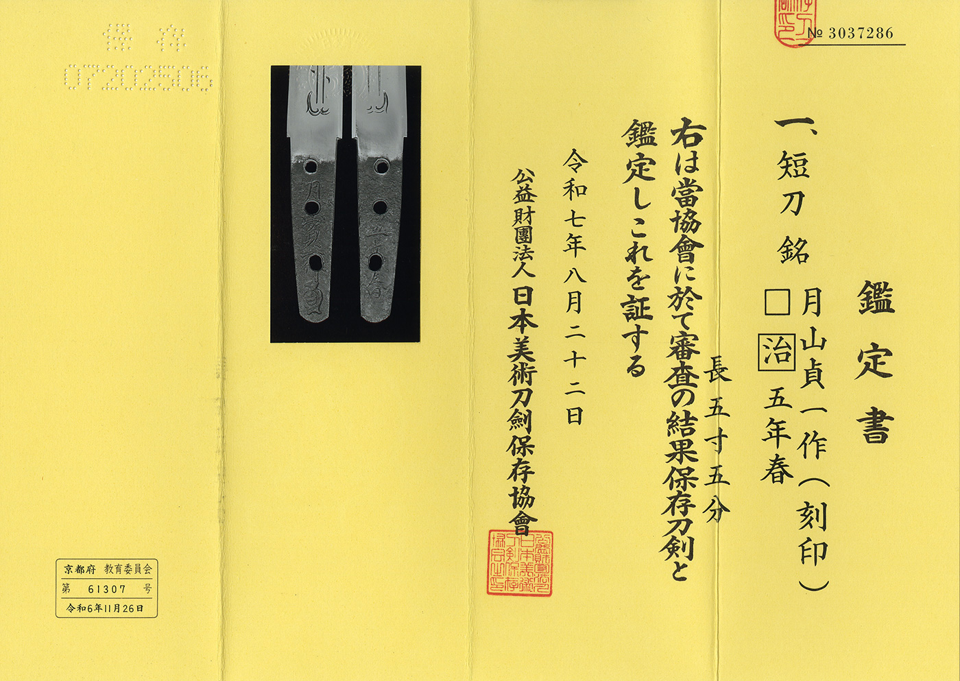 Signature: Gassan Sadakazu Saku (stamped) 月山貞一作