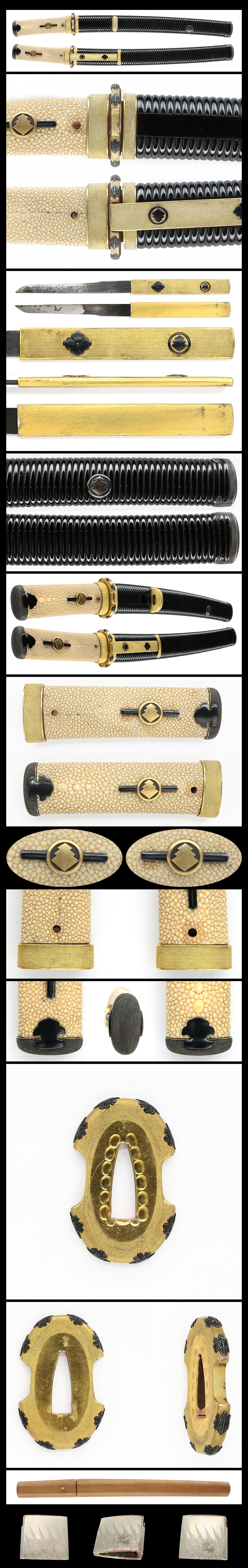 Fuchi, Kurikata, Kashira and Kojiri : Nanako-ji with gold and silver color