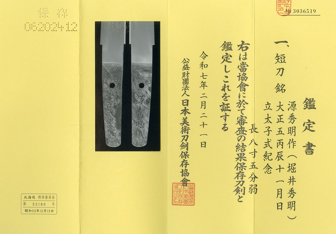 NBTHK Hozon Certificate