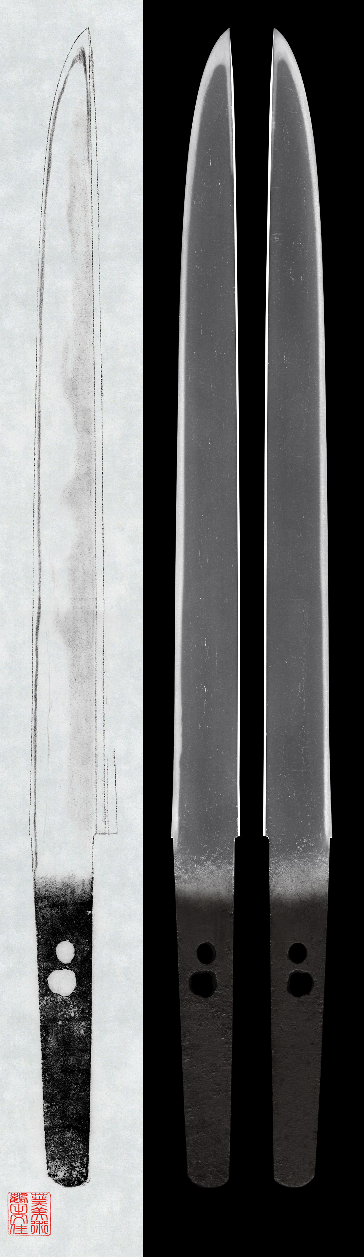 Shape: slightly thin tanto with Mitsumune, typical shape from Kamakura period.