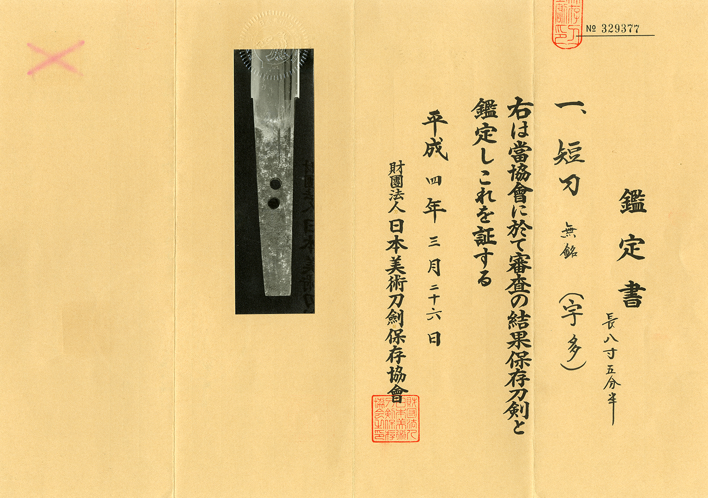 Tanto:Mumei(Uda) (NBTHK Hozon Paper)