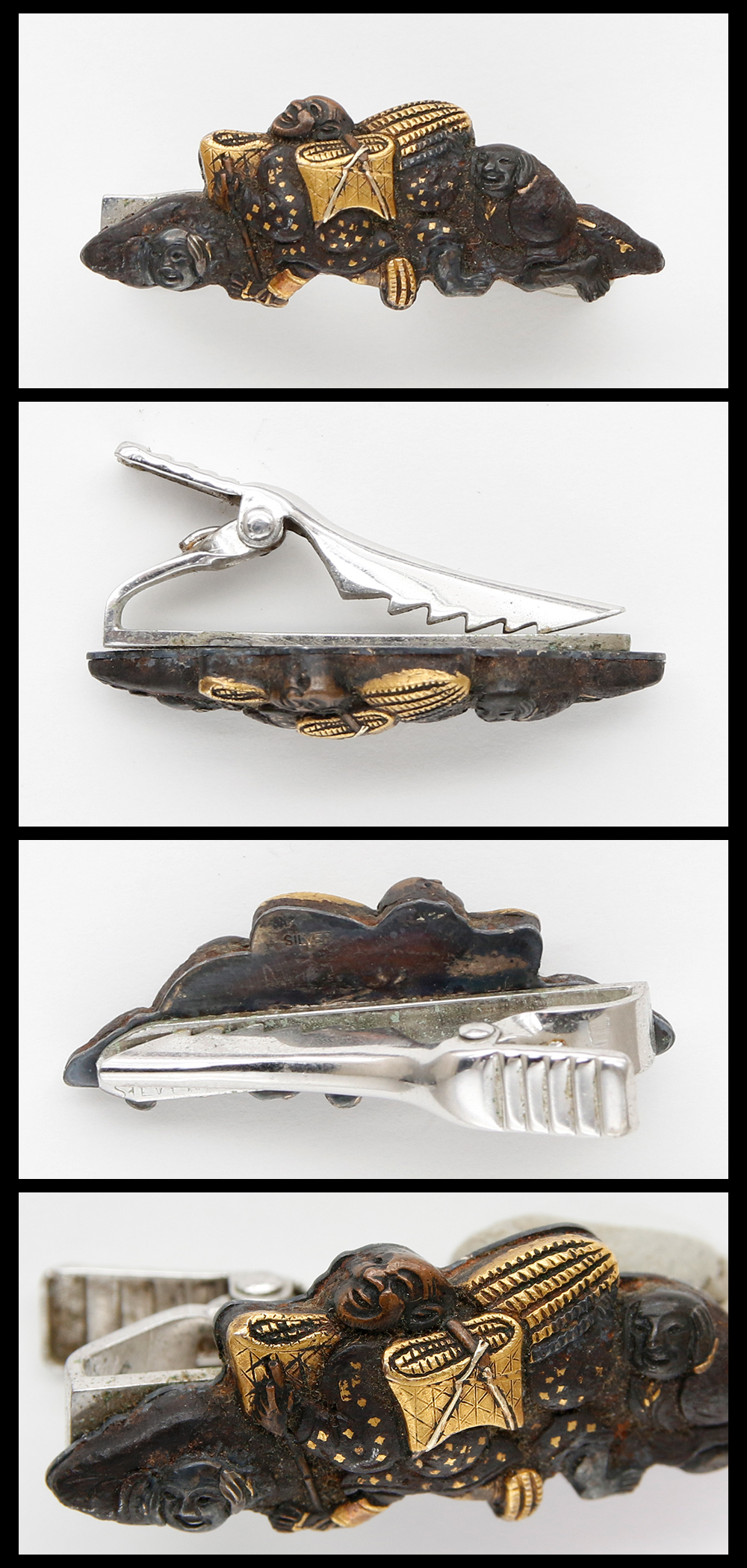 The Menuki crafted at Edo period fixed to use as tiepin. Silver plate is used for attachment.