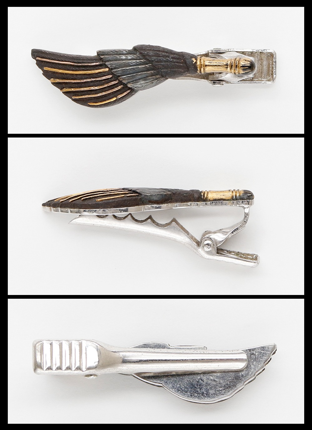 The Menuki crafted at Edo period fixed to use as tiepin. Silver plate is used for attachment.
