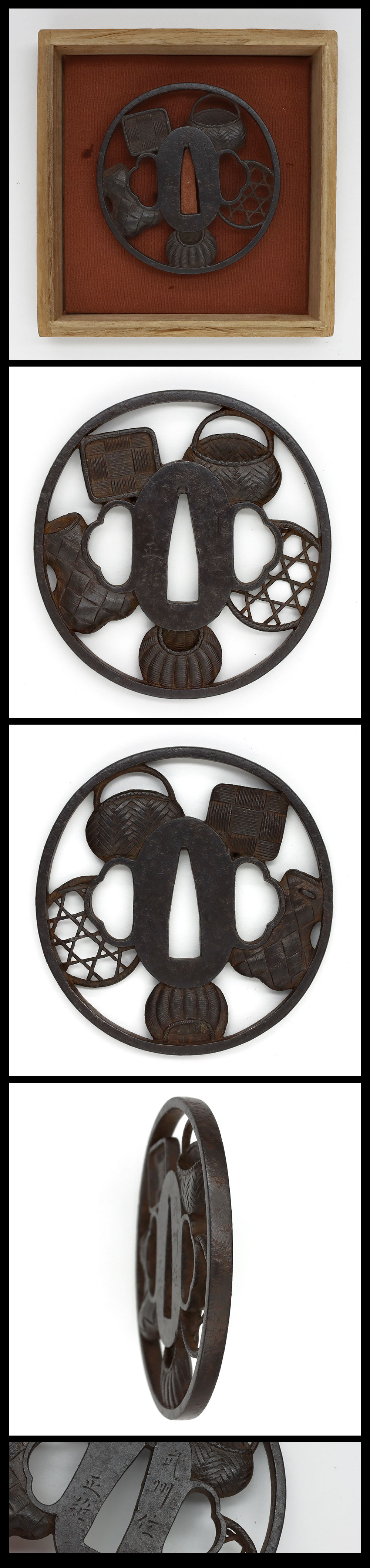 Special feature: Round shape iron tsuba, openwork of three-dimensional bamboo brackets are carved.
