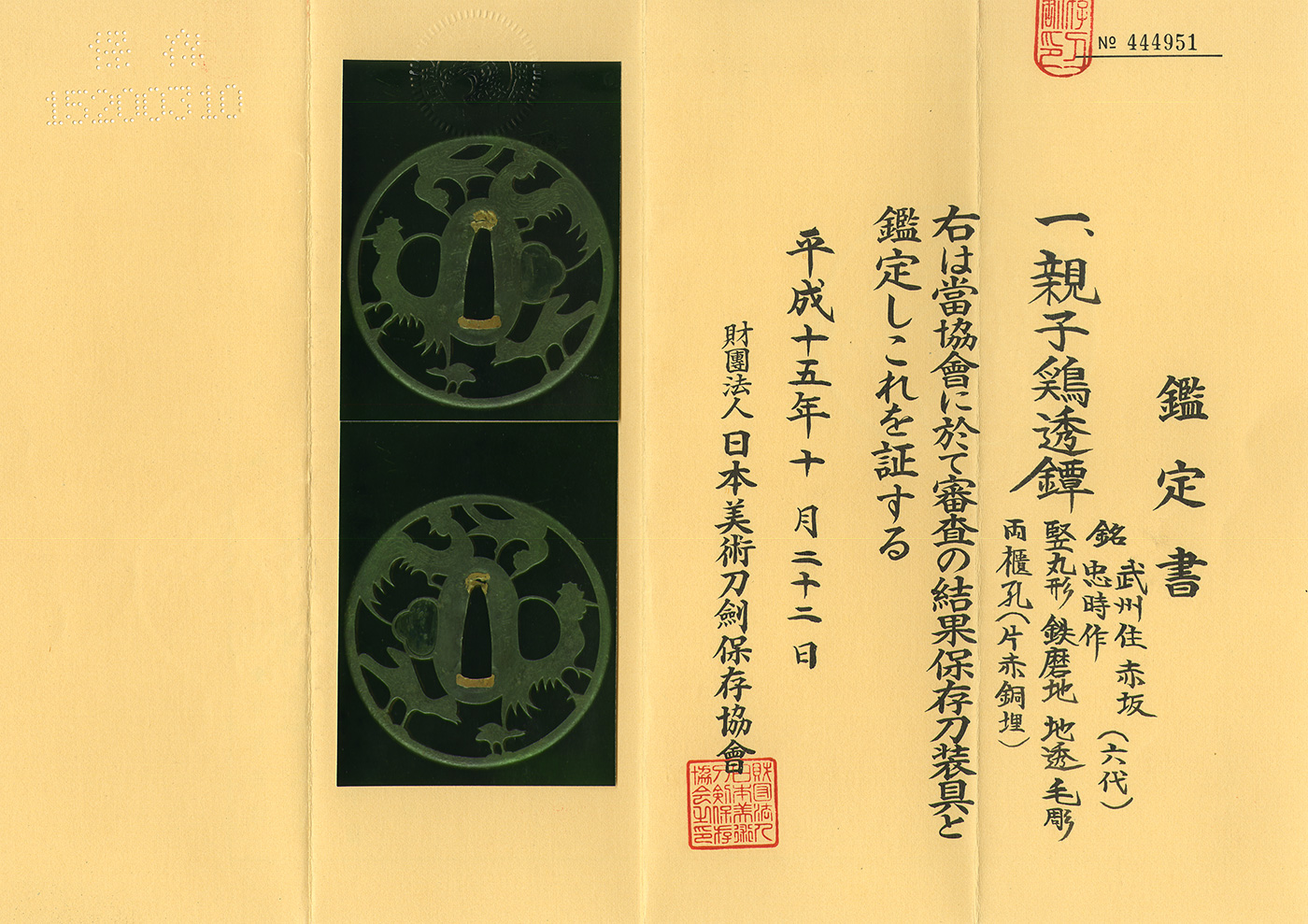 Tsuba:Bushu Ju Akasaka/Hikojuro Tadatoki Saku(NBTHK Tokubetsu Hozon Paper)