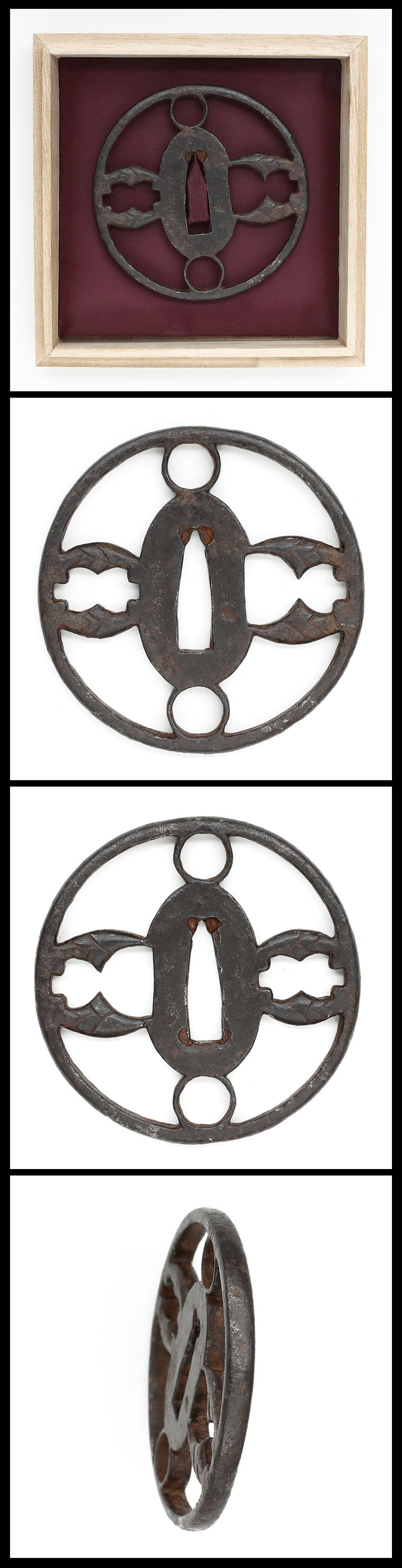 Features: Round-shaped iron tsuba with openwork carving of Japanese gingers.