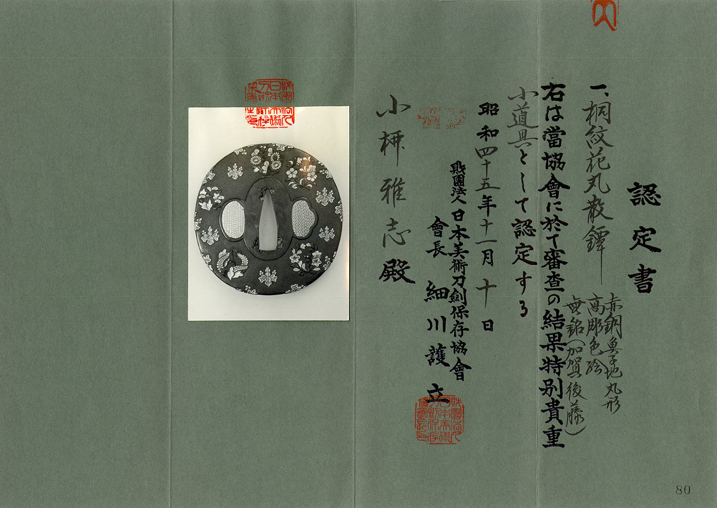 Tsuba: (Tokubetsu Kicho Tosogu)