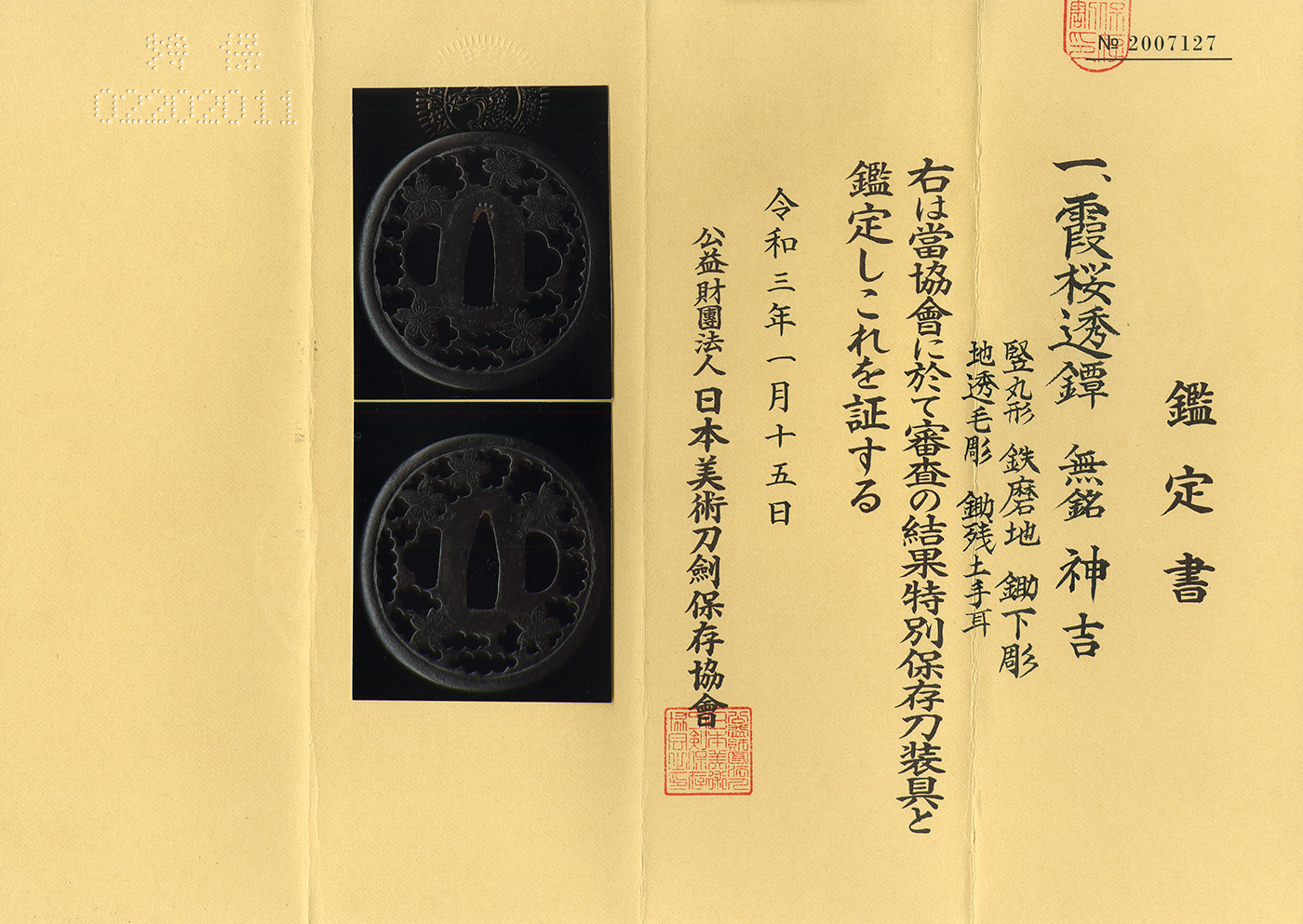 Tsuba:(NBTHK Hozon Tosogu paper) Inscription: Mumei(unsigned)