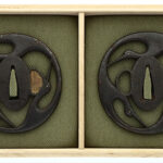 Features: slightly big and thick iron tsuba with openwork carving of a crane.