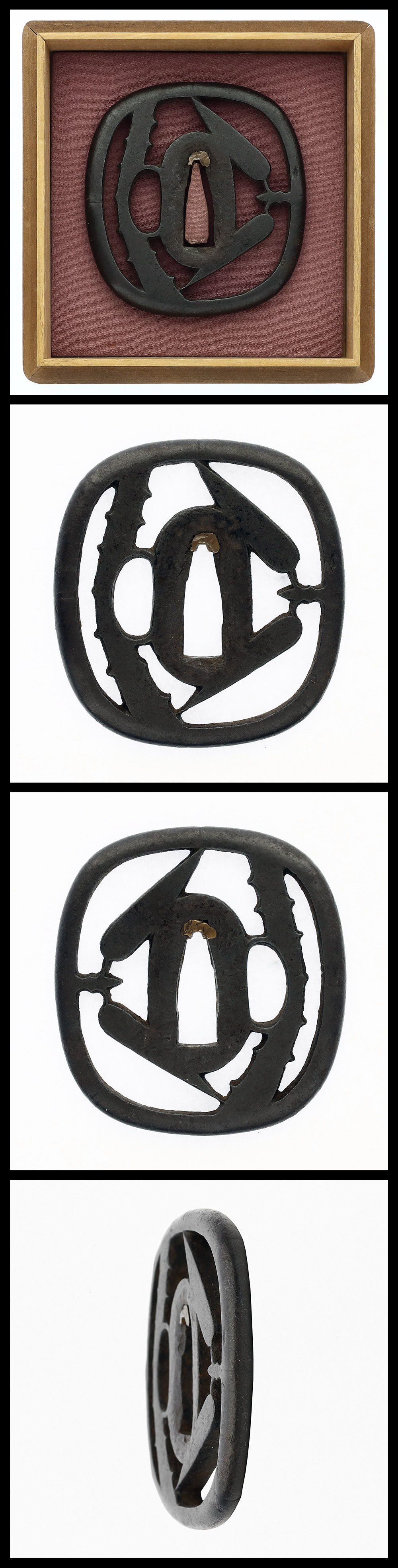 Features: An iron tsuba carved with a openwork design of bamboo. The Myochin school was originally armor makers, and in the Edo period they began to produce sword fittings such as tsuba.