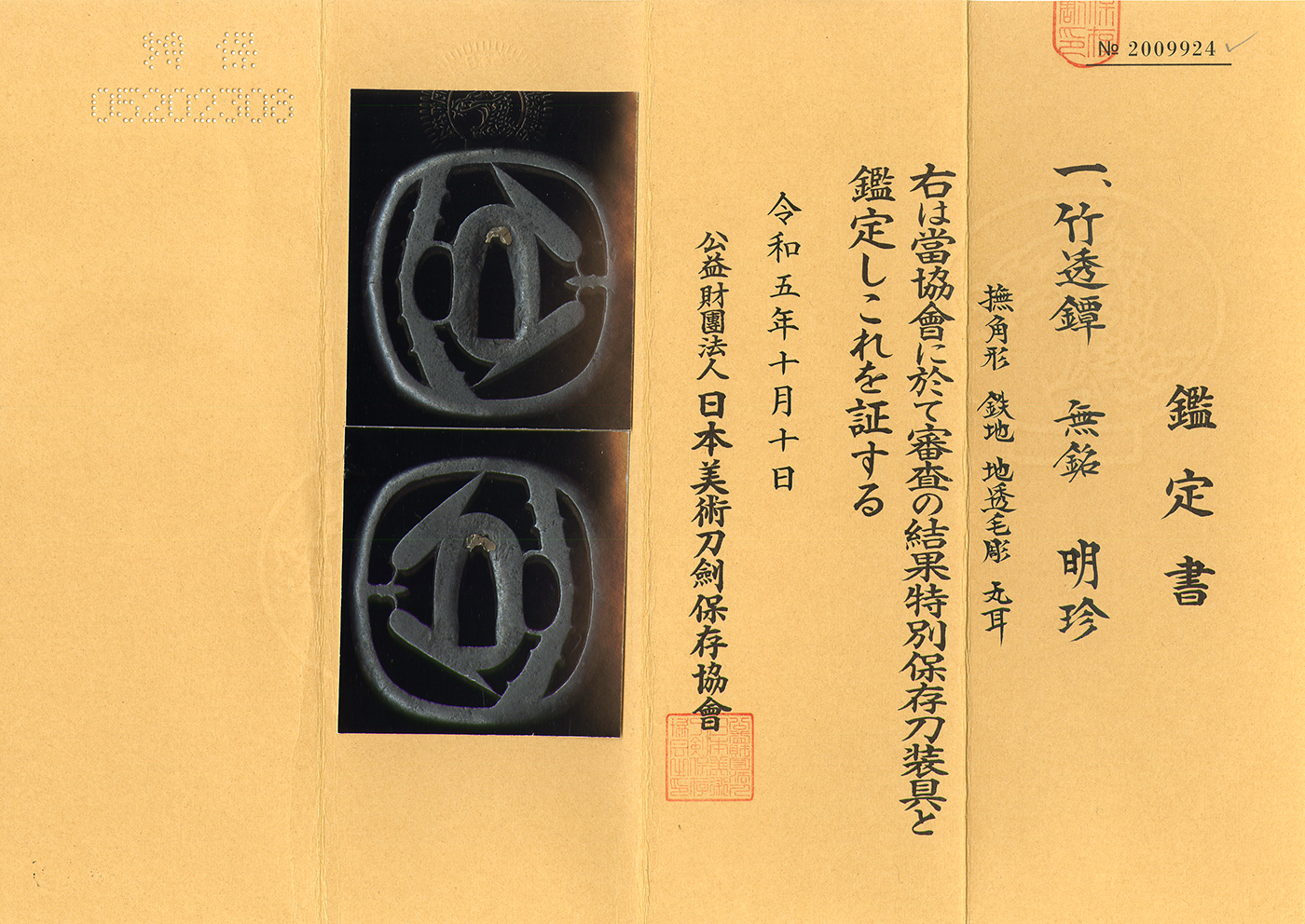 NBTHK Tokubetsu Hozon Certificate