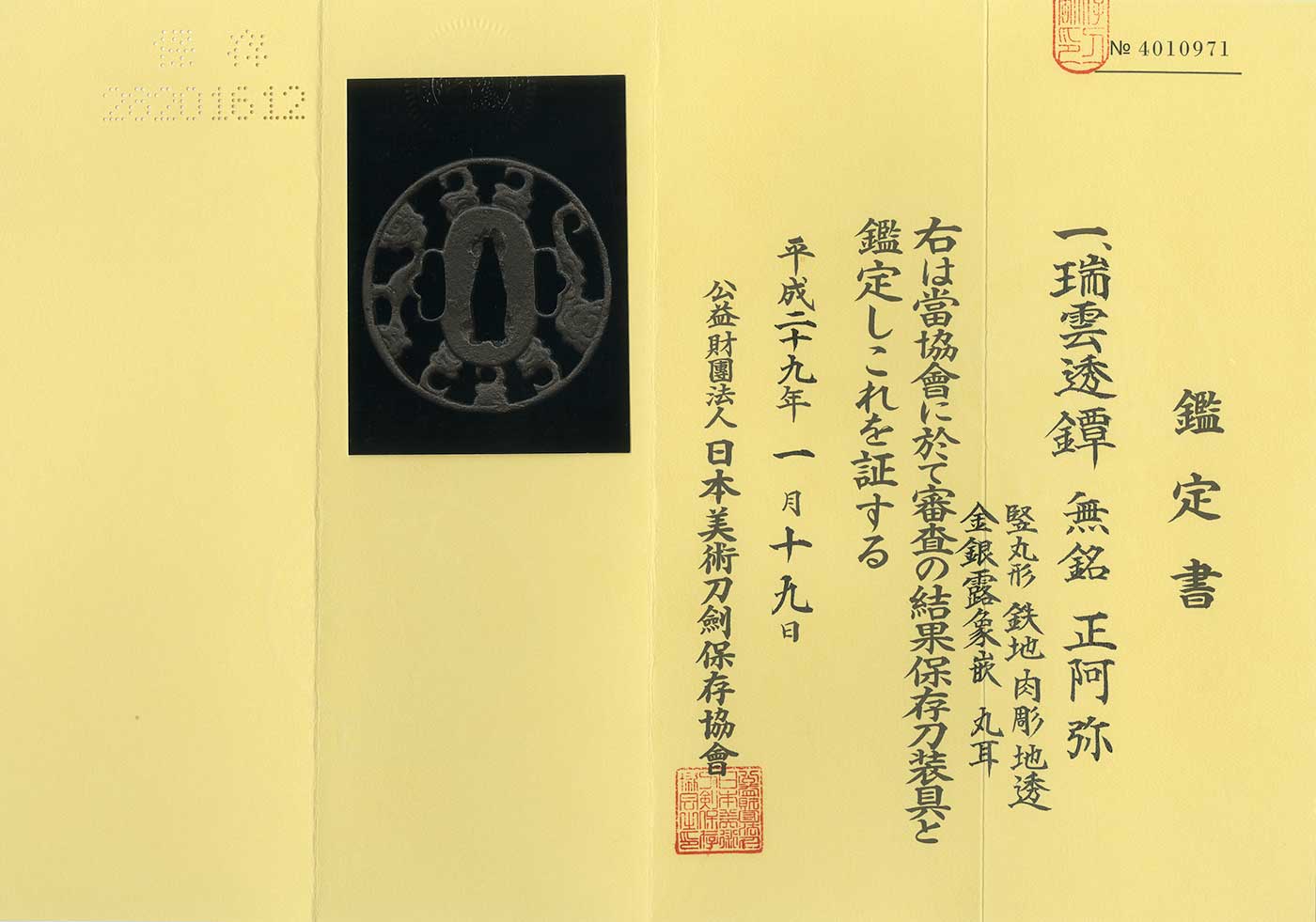 Special Feature:Round iron Tsuba, Zuiun(auspicious clouds) are engraved with gold and silver color.