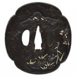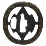 Features: A round iron tsuba with an openwork design of cloud shapes in a worm-eaten pattern motif.