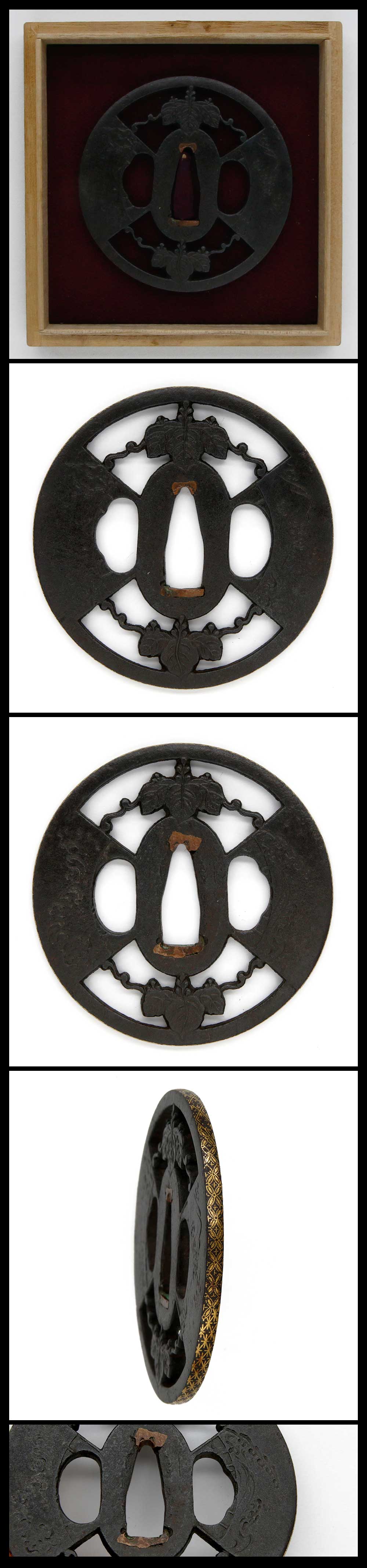 Special feature: Round iron Tsuba, Kiri-Kasagusa is engraved with openwork. Mimi is a gold inlay.