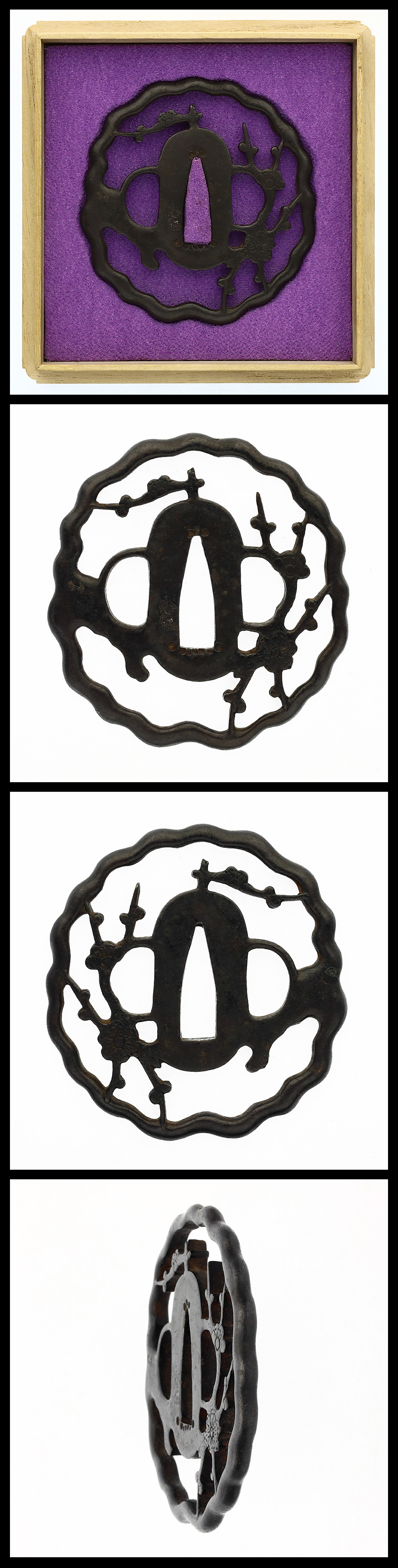 Features: An irregularly shaped iron plate with an openwork design of plum blossoms