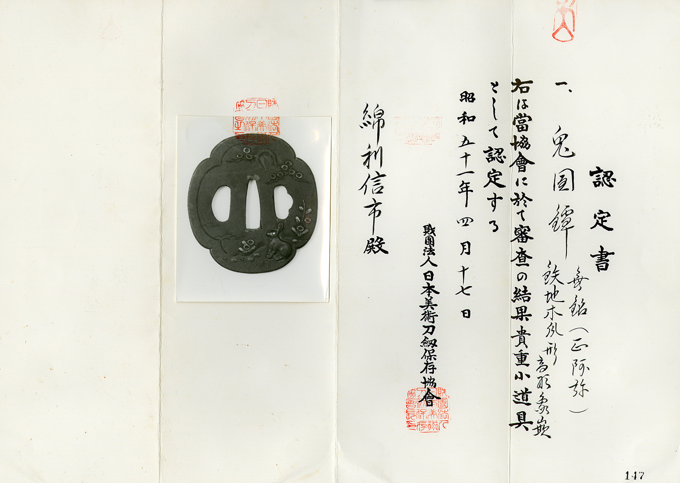 Tsuba:(NBTHK Kicho Kodogu Paper)