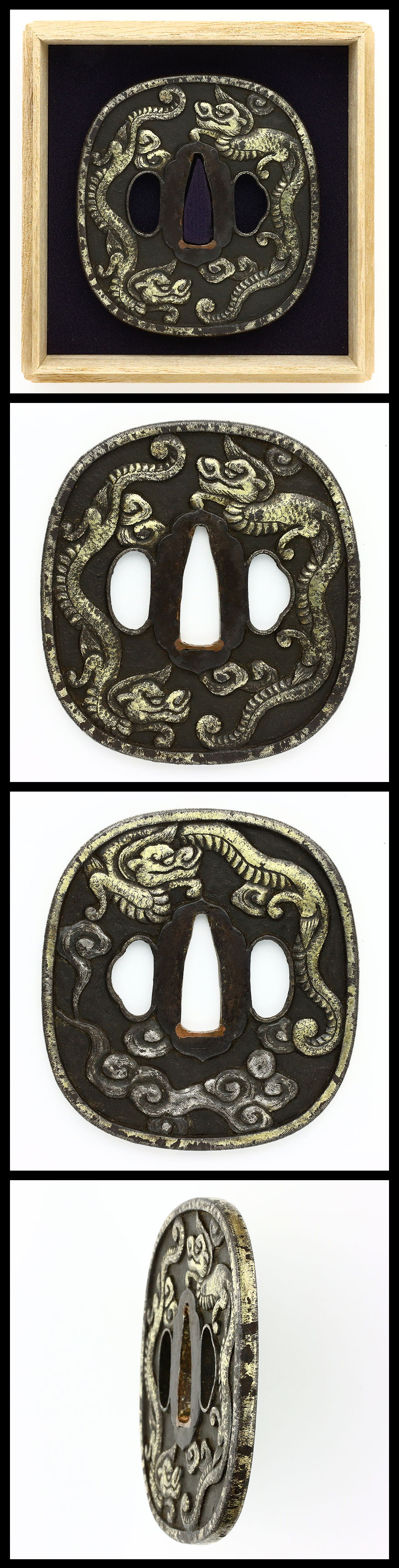 Features: On round Mokko-shape, scenery and building are engraved and colored. The entrance of the building in the lower right corner of the artwork is carved in relief, creating a three-dimensional representation.