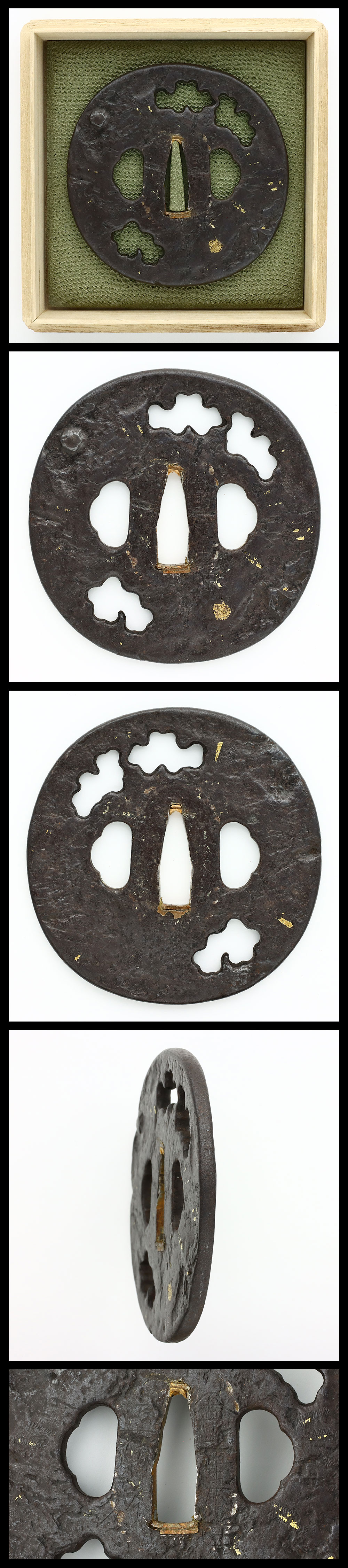 Special feature: Nadekaku-shaped hammered iron plate, patterns are engraved with openwork and gold color.
