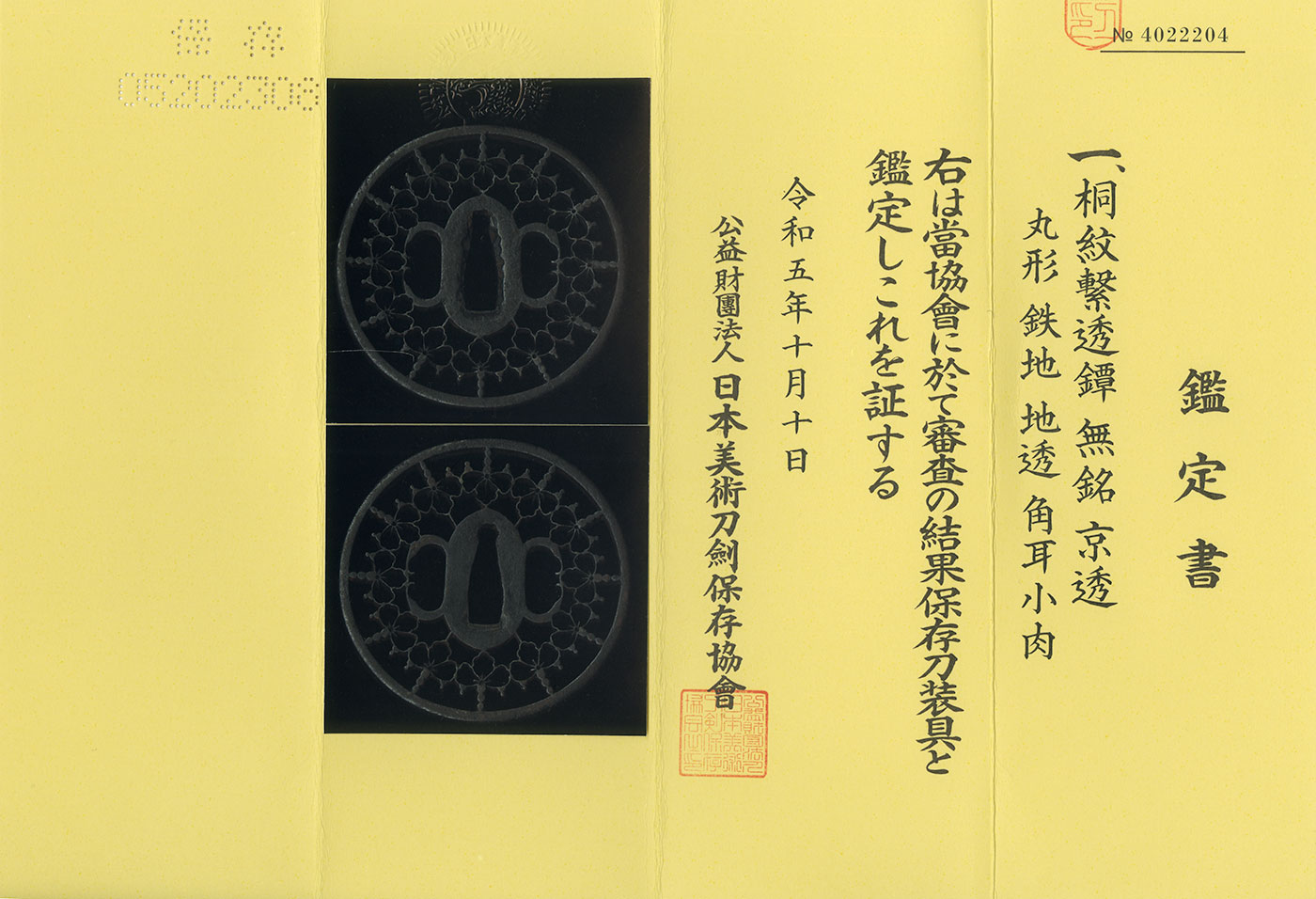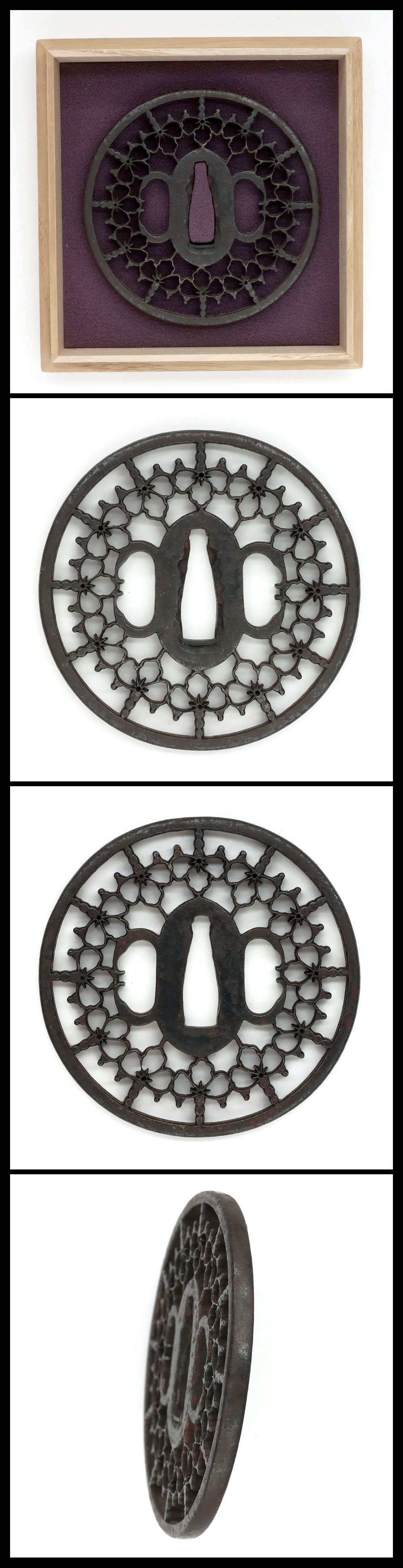Features: On the round iron plate, Paulownia Crests are engraved with openwork.