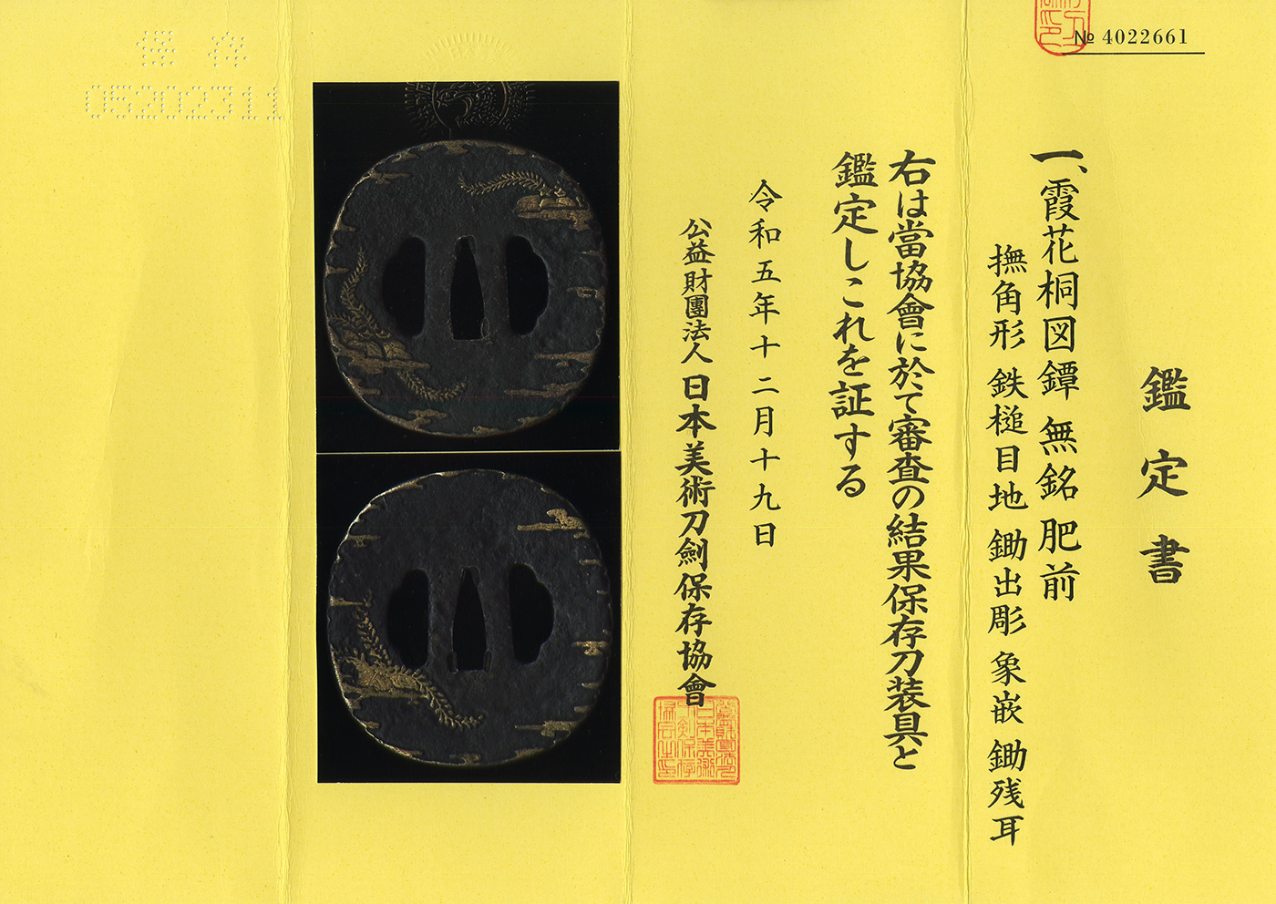 Tsuba: Mumei(Unsigned)(Akasaka)(NBTHK Hozon Tosogu paper)