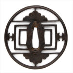Features: A round iron tsuba with an openwork carving of plant motifs, decorated with gold inlay