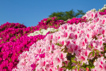 The cold days have passed, and the reddish-purple azaleas are now in full bloom.
