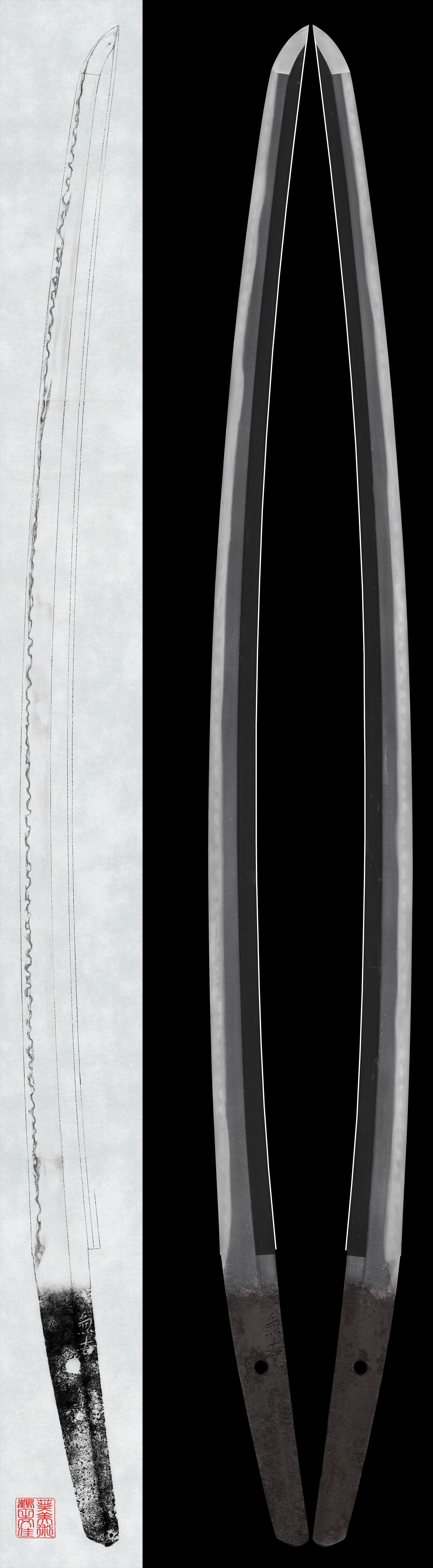 Shape:A blade of standard width and thickness with slightly deep curvature and an extended kissaki.