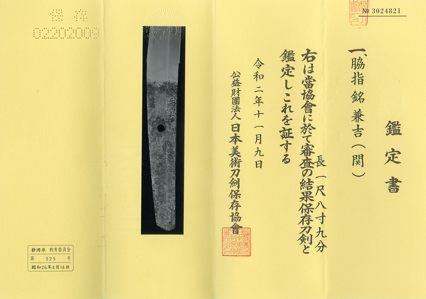 Katana: Iga no Kami Fujiwara Kanemichi (26th NBTHK Tokubetsu Juyo Token)