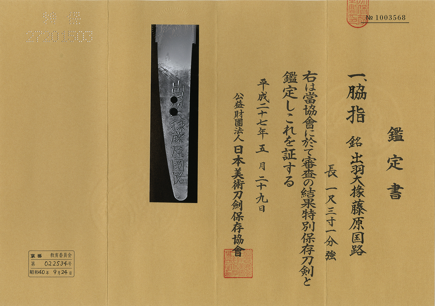 Aoi Art estimation paper : whole Oshigata.