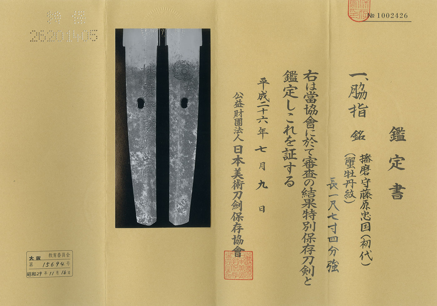 Signature : Harima no kami Fujiwara Tadakuni(1st generation)