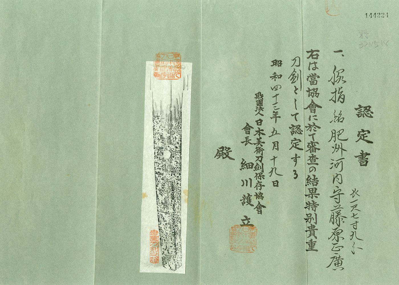 Signature: Hishu Kawachi no Kami Fujiwara Masahiro.