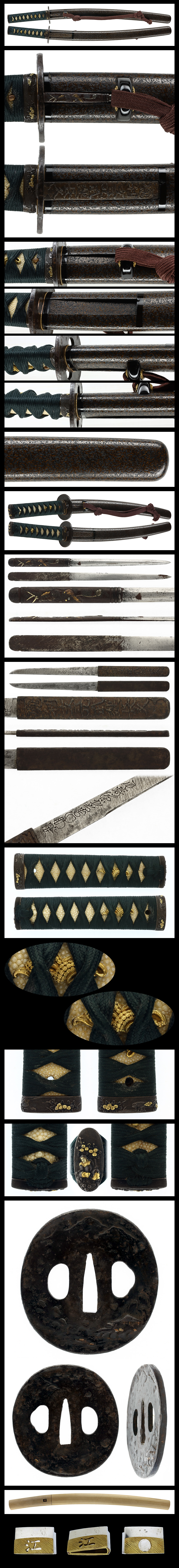 Habaki: Gold-covered and silver-covered Habaki with engraved “Maru” and “E” characters.