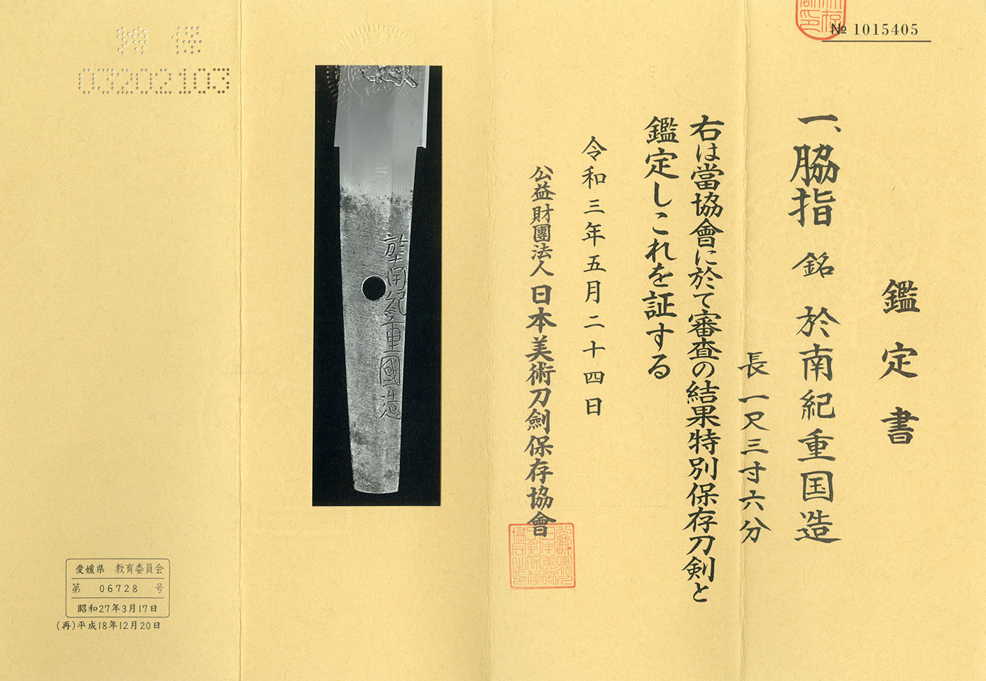 Features: Nanki Shigekuni is particularly known for the excellence of his jigane.