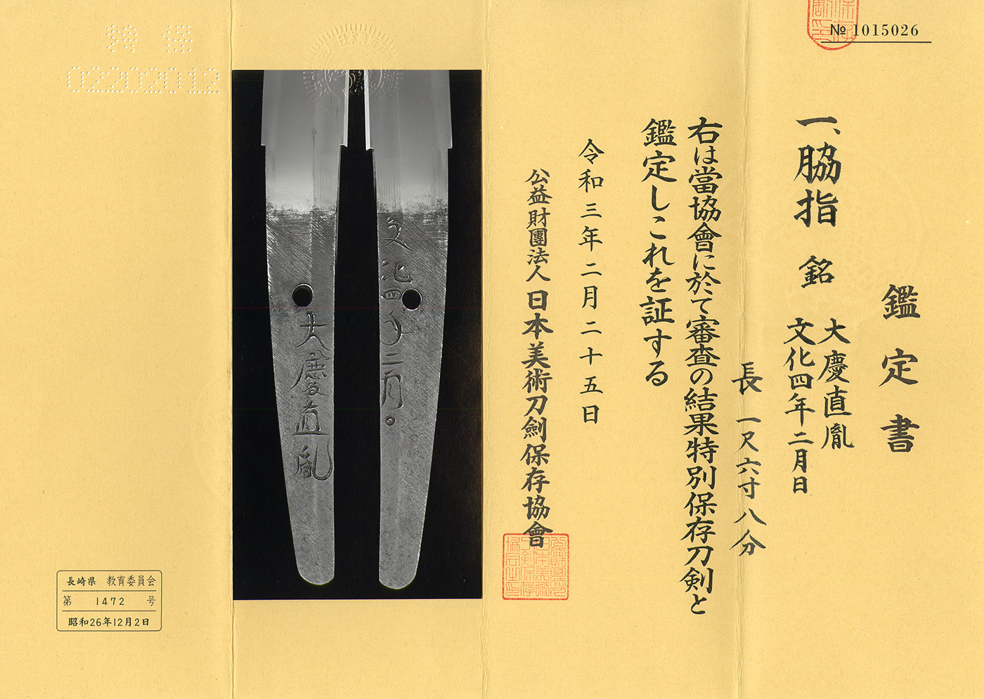 This sword is ranked as Saijo Saku among the works of Taikei Naotane.
