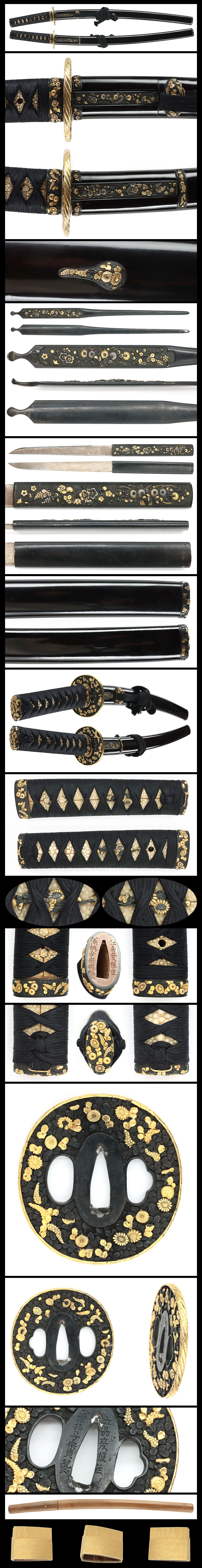 Kurikata: Kawarigane; Kaerizuno: Shakudo base with chrysanthemum motifs, decorated with gold iro-e.