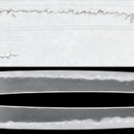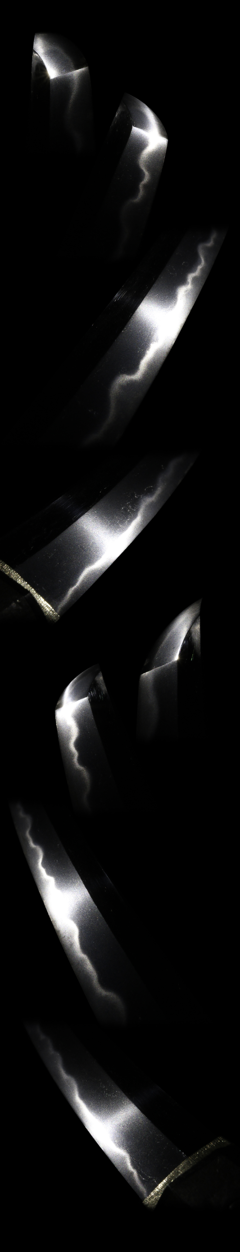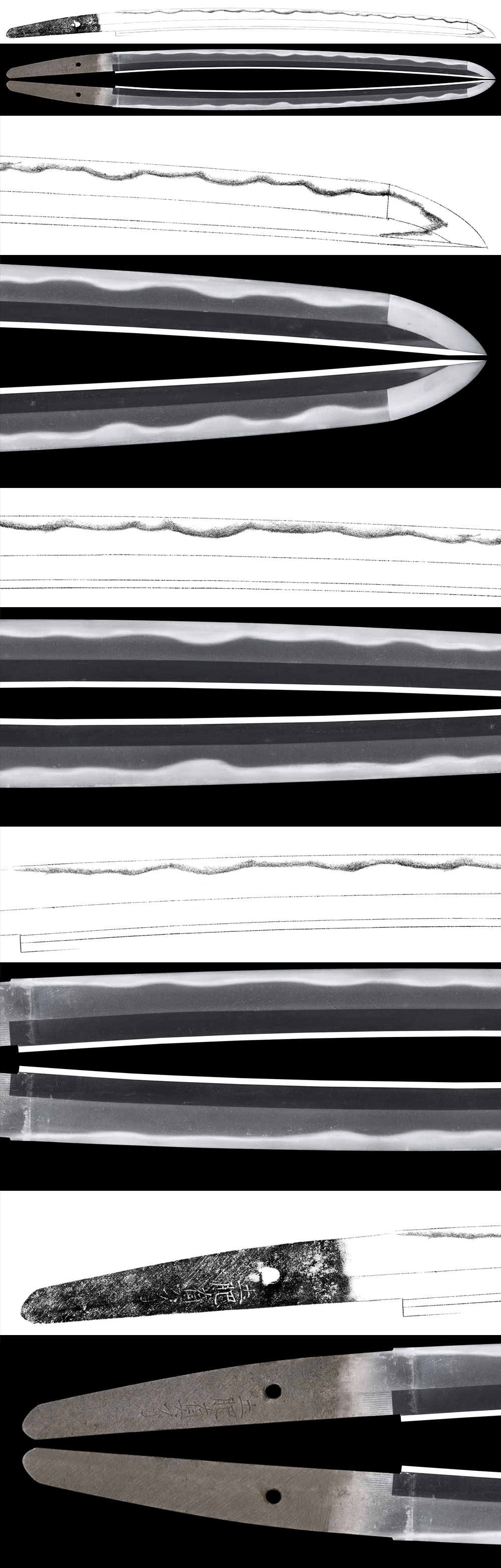 Hamon: Niedeki, from Hamachi is deep Nioiguchi Suguha, then it is deep Nioiguchi Notare Gunome-midare. Boshi is round Togari-gokoro shape.
