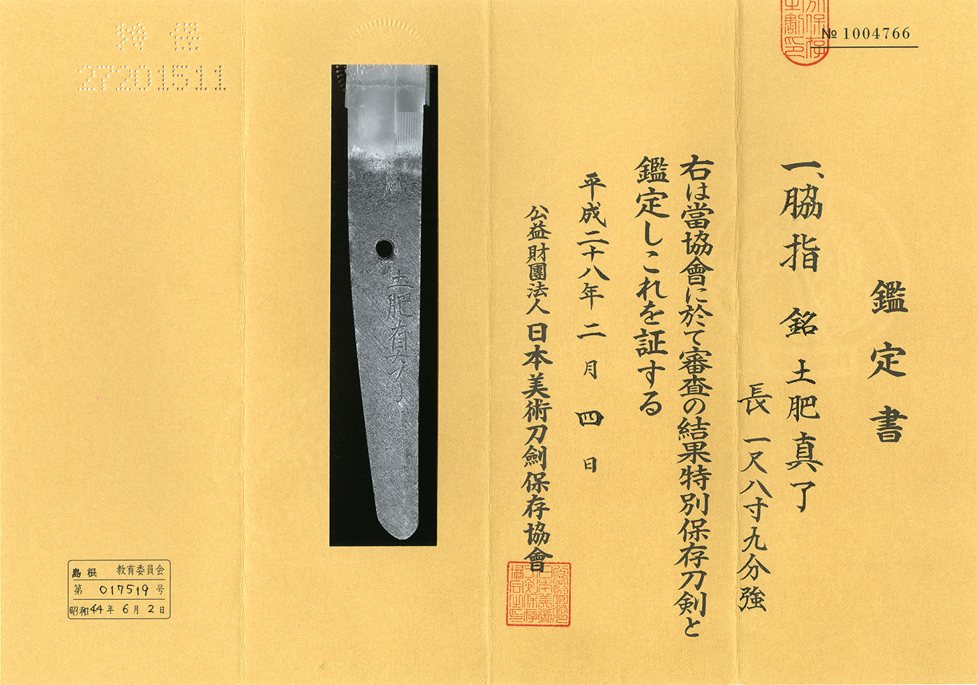 Special feature: Dohi Shinryo was a swords smith of Hizen province, present Saga and Nagasaki prefectures. He was born at Hirado in Nagasaki pref as a son of swordsmith known as Doi Masahori. Shinryo learned under the Inoue Shinkai's clan. Shinkai was a very famous Shin-to swordsmith in Osaka. Shinryo went back to Hirado around Tenwa era, 1680's and worked for the Matsuura family.