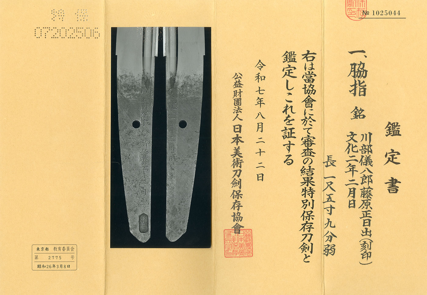 Signature: Kawabe Gihachiro Fujiwara Masahide (Kokuin).