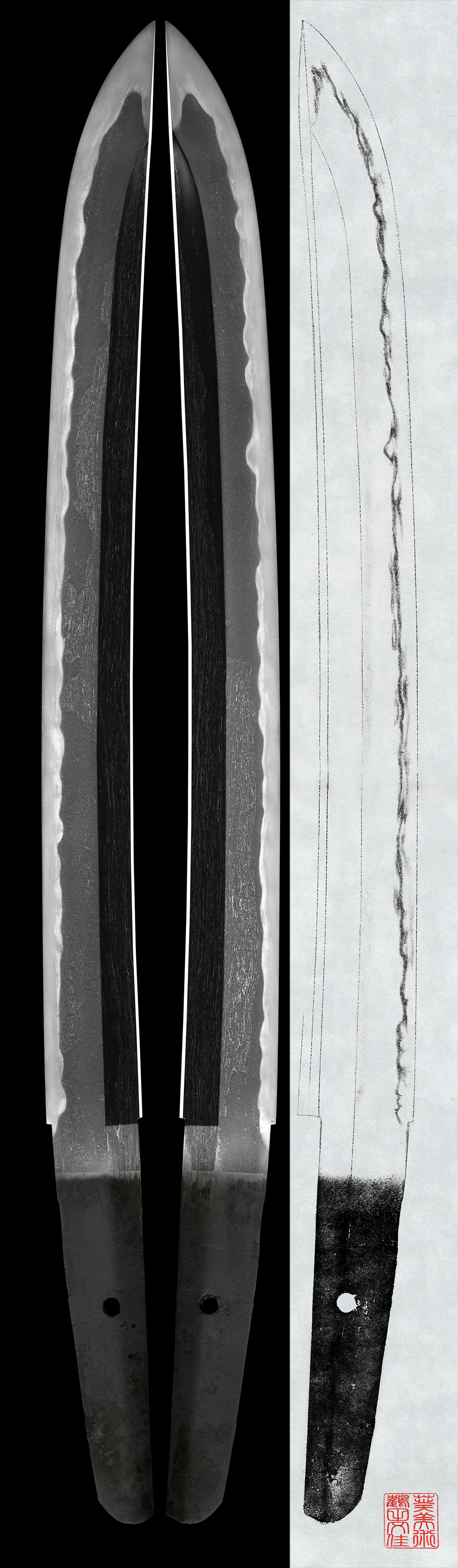 Hamon: Ko-Gunomemidare, the bright Hamon.
